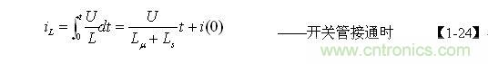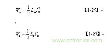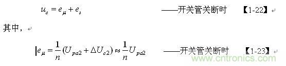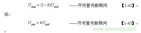 【1-42】和【1-43】式中, k=Ls/L為漏感 Ls與開(kāi)關(guān)變壓器初級(jí)線圈的電感L的比值。