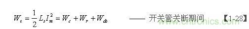 【1-28】式中,Wc 為電源開(kāi)關(guān)管由導(dǎo)通到完全關(guān)斷期間電容器C儲(chǔ)存的能量, Wr為電源開(kāi)關(guān)管由導(dǎo)通到完全關(guān)斷期間電阻R損耗的能量,Wds 為電源開(kāi)關(guān)管由導(dǎo)通到完全關(guān)斷期間漏極電流(逐步減?。?duì)電容器C充電產(chǎn)生分流作用所做的功。
