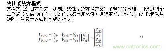 Vcs1 和 Vcs2 可通過(guò)方程式 4 確定。請(qǐng)選擇 R2 的值。最佳實(shí)踐是選擇已經(jīng)存在于電源設(shè)計(jì)中的值,因?yàn)檫@有助于確保網(wǎng)絡(luò)穩(wěn)定性。轉(zhuǎn)換器的反饋電壓 Vfb 可在穩(wěn)壓器產(chǎn)品說(shuō)明書中找到。這樣我們可手動(dòng)或用數(shù)學(xué)工具解算線性系統(tǒng)方程式,結(jié)果就是 G1 和 GM 電導(dǎo)值。反過(guò)來(lái),其結(jié)果就是 R1 和 RM。