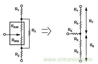 使用串并聯(lián)組合對(duì)電位計(jì)進(jìn)行線性化可能十分復(fù)雜,如圖10中的等效電路所示。