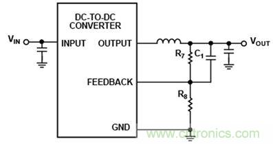 圖1:開關(guān)電源電壓控制環(huán)路的反饋網(wǎng)絡(luò)采用兩個(gè)電阻