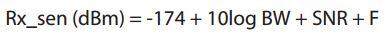 接收靈敏度用來(lái)表示接收器的弱信號(hào)接收能力。具體公式如下: