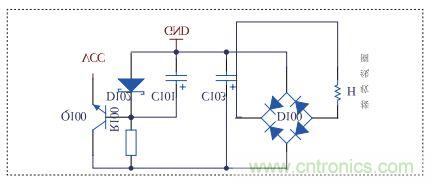 如圖3,當(dāng)感應(yīng)線(xiàn)圈靠近發(fā)射線(xiàn)圈時(shí),就會(huì)產(chǎn)生感應(yīng)電流,經(jīng)過(guò)全波整流后,根據(jù)不同的電子產(chǎn)品的充電電壓,可選擇不同的穩(wěn)壓二極管穩(wěn)壓,再經(jīng)三極管Q100放大電流后供給不同電子產(chǎn)品充電。