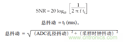 總抖動會產(chǎn)生誤差電壓,ADC 總SNR 的限制因素為