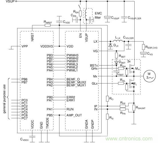 完善的內(nèi)部集成功能使得PCB板級(jí)的設(shè)計(jì)變得簡(jiǎn)單,另外,其內(nèi)置的BEMF測(cè)量模塊,使得用戶在測(cè)量相電壓時(shí)無需使用外部分壓電阻,進(jìn)一步簡(jiǎn)化板級(jí)的設(shè)計(jì)。