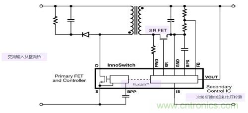 PI的FluxLink技術(shù),就是為了解決這個困擾而開發(fā)的。FluxLink技術(shù)不僅能實(shí)現(xiàn)高性能次級反饋控制,而且還能實(shí)現(xiàn)初級反饋控制通常所提供的線路簡單以及元器件數(shù)目少的優(yōu)勢,而高效的同步整流技術(shù)的采用,可以保證在包括重載在內(nèi)的整個負(fù)載范圍內(nèi)均提供極高的效率,讓電源的設(shè)計(jì)“魚和熊掌兼得”。