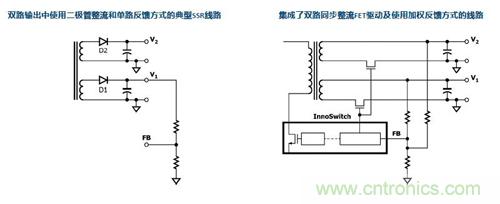 圖3,InnoSwitch采用了加權(quán)反饋方式,優(yōu)化了多路輸出性能