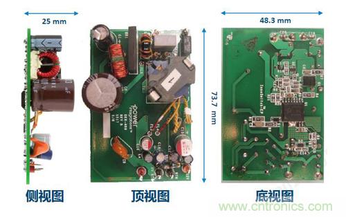 由于光耦的性能會隨著時間下降,所以采用InnoSwitch-EP IC而無需光耦的電源可靠性會得到加強(qiáng),同時電路所需的元器件數(shù)量也大大減少。以一個20W的電路設(shè)計(jì)為例,整個方案不到50個元器件,且不需要散熱片,這使得最終產(chǎn)品的外形尺寸也可以更為小巧。(見圖5)