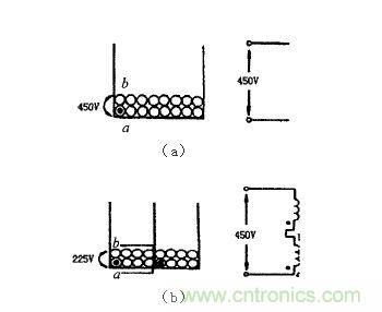 (a)一般電源變壓器初次級(jí)分段繞制后的效果(b)電源變壓器初次級(jí)線圈分兩部分繞制后的效果