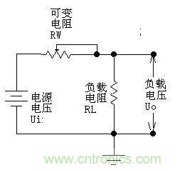 工作原理:我們先用下圖來(lái)說(shuō)明線性穩(wěn)壓電源調(diào)節(jié)電壓的原理。如下圖所示,可變電阻RW跟負(fù)載電阻RL組成一個(gè)分壓電路,輸出電壓為:
