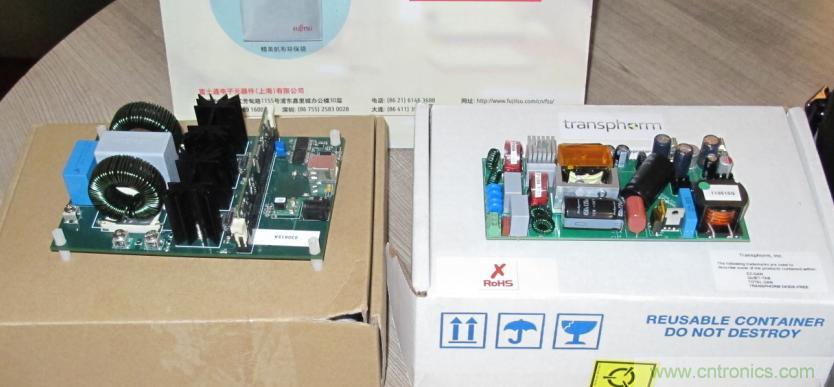 在演講現(xiàn)場,富士通電子展示了兩款基于HEMT器件的電源模塊方案。“我們的PFC+LLC電源與類似的競爭方案相比,電路板尺寸可以縮減45%,在滿載和10%的負(fù)載下,我們可以分別提高1.7%和3%的效率。對于很多效率要求苛刻的應(yīng)用來說,這是一個非常大的提升。”Eric指出。