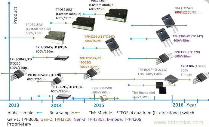 Transphorm依據(jù)基本發(fā)展路線圖進(jìn)行開發(fā),首先是合格的600 V器件和1000V器件。Transphorm的研究和開發(fā)還在繼續(xù),現(xiàn)在推出了600V的擴(kuò)展系列,采用更低的R(ON)設(shè)備和高功率封裝(含模塊),然后是繼150V器件之后的1200 V器件。據(jù)Eric透露,今年會推出900V和1200V的產(chǎn)品,低壓方面會提供150V的產(chǎn)品。據(jù)悉,未來Transphorm還將推出代替Cascode的E-Mode創(chuàng)新結(jié)構(gòu)技術(shù),將會把當(dāng)前結(jié)構(gòu)中存在的不利因素解決掉,實現(xiàn)更卓越的功率器件性能。將提供更大功率的產(chǎn)品,從2014年推出第一顆TO240,電流從30、40,逐步往60、70、80的方向發(fā)展。