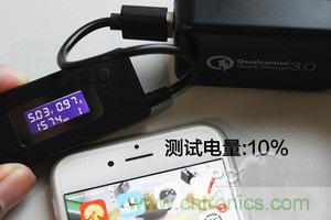 測試電量:10%(原裝充電器;第三方充電器;USB口插板)點擊看大圖