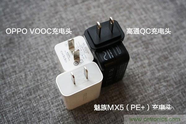 測試手機:OPPO R9、Moto X 極、魅族PRO 6,充電頭:VOOC閃充頭、高通官方QC充電頭、魅族MX5充電頭(UP1220)。其中(OPPO R9應搭配VOOC閃充頭使用:VOOC閃充協(xié)議);(Moto X 極應搭配高通官方QC充電頭使用:QC2.0快充協(xié)議);(魅族PRO 6應搭配MX5充電頭使用:聯發(fā)科PEP快充協(xié)議)。