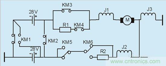 第三階段:即按下起動按鈕后的9S~15S內(nèi),起動電源車內(nèi)的兩組電瓶由并聯(lián)轉(zhuǎn)為串聯(lián),起動機(jī)兩端的電壓由28V升高到56V,起動機(jī)轉(zhuǎn)矩急劇增大,從而使渦輪轉(zhuǎn)速急劇上升。