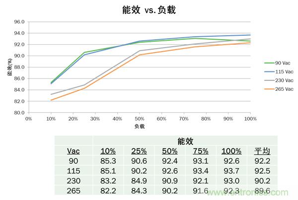 圖4. 45 W參考設(shè)計(jì)能效 vs. 負(fù)載曲線