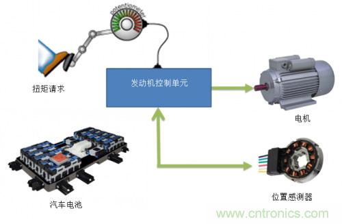 圖1:電動(dòng)機(jī)控制單元與位置感測(cè)器裝備地點(diǎn)。