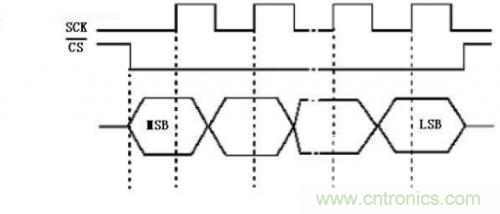 移位寄存器按位傳輸進行數(shù)據(jù)交換,傳輸數(shù)據(jù)高位在前,低位在后(MSB)。在SCK的下降沿上數(shù)據(jù)改變,上升沿一位數(shù)據(jù)被存入移位寄存器。