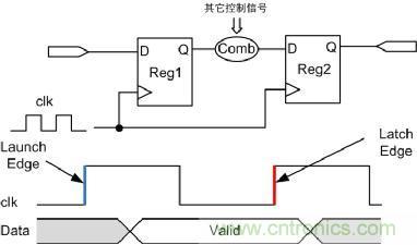 (2)捕獲沿(Latch Edge):后記寄存器捕獲數(shù)據(jù)對(duì)應(yīng)的時(shí)鐘沿,是時(shí)序分析的終點(diǎn)。相對(duì)于launch Edge通常為一個(gè)時(shí)鐘周期,但不絕對(duì),如多周期。