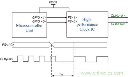 高性能時鐘設(shè)備支持包含個性化配置的多個用戶配置文件。在 FS 引腳轉(zhuǎn)換方面,高性能時鐘器件具有兩個時序規(guī)格 - 快速切換和慢速切換。