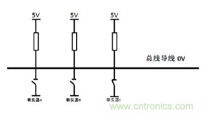 CAN總線的仲裁是基于“線與原理”,如圖1所示。當(dāng)個(gè)收發(fā)器同時(shí)發(fā)出不同電平信號(hào)時(shí),隱性電平總是被顯性電平覆蓋。CAN控制器在發(fā)送報(bào)文的同時(shí)會(huì)監(jiān)聽總線狀態(tài)與自己發(fā)送的電平是否一致,如果不一致發(fā)生在ID段則會(huì)發(fā)生仲裁,如果發(fā)生在其他區(qū)域則會(huì)觸發(fā)相應(yīng)錯(cuò)誤。