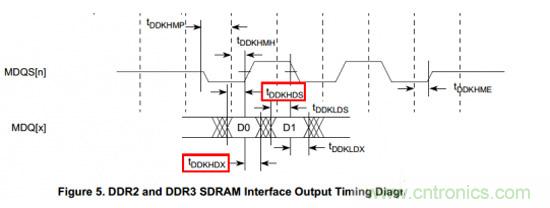 下面我們通過具體實例來看看時序的計算,下圖是Freescale MPC8572 DDR主控芯片手冊,這張圖片定義了從芯片出來的時候,DQS與DQ之間的相位關(guān)系。