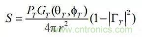 其中: PT是發(fā)射功率; r是天線范圍或距離; ΓT是發(fā)射器反射系數(shù); GT(θT,ΦT)是與角度有關(guān)的發(fā)射器增益。