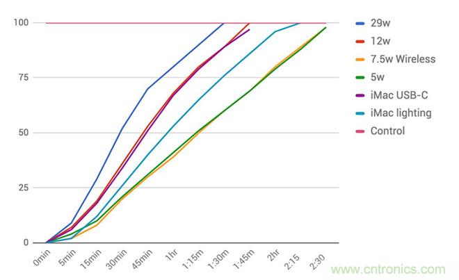 如果選購 149 元的 12W 的充電器,雖然輸入功率上不如 29W,但已經(jīng)比 5W 的慢充頭快得多了。根據(jù) AppleInsider 的測試,給 iPhone 8 Plus 充滿電,12W 充電器雖然比 29W 的慢了約 20 分鐘,卻足足比 5W 慢充頭快了一個小時。