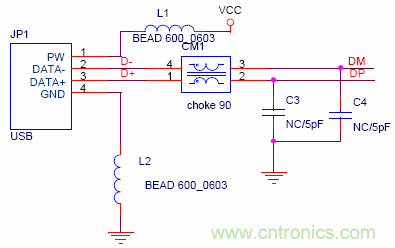 USB 高速運行會在DM/DP信號線上產(chǎn)生很強的共模干擾