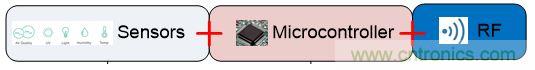 將傳感器與傳統(tǒng)的微控制器連接起來,需要在芯片外構建接口電路,盡管某些設備可能已經(jīng)將一個固定的ADC集成到了MCU中。對于物聯(lián)網(wǎng)應用而言,最理想的莫過于實現(xiàn)完整的模擬和數(shù)字組件與高度集成的MCU相結合。