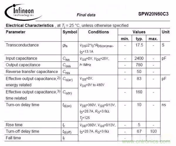 參照以上兩圖,是不同型號(hào)的MOS管,對(duì)比下輸入結(jié)電容和輸出結(jié)電容,2400PF與800PF;780PF與2200PF;一看就知道第一個(gè)規(guī)格是快管,第二個(gè)是慢管,這時(shí)候決定開關(guān)速度還要與驅(qū)動(dòng)電阻匹配;常規(guī)情況驅(qū)動(dòng)電阻在10R-150R比較多,選取驅(qū)動(dòng)電阻與結(jié)電容有關(guān),針對(duì)快板驅(qū)動(dòng)電阻可適當(dāng)增大,慢管驅(qū)動(dòng)電阻可適當(dāng)減小; 對(duì)于二極管,有肖特基二極管,快回復(fù)二極管,普通二極管,還有一種用的比較少的SIC二極管,開關(guān)速度SIC二極管幾乎為零,等于是沒有反向恢復(fù),開關(guān)輻射最小,并且損耗也最小,唯一的缺點(diǎn)就是價(jià)格昂貴,故很少用;其次就是肖特基二極管,正向壓降低,反向恢復(fù)時(shí)間短,依次是快回復(fù)和普通二極管;需要在損耗和EMC之間折中;一般可采取改吸收以及套磁珠等措施整改EMC;