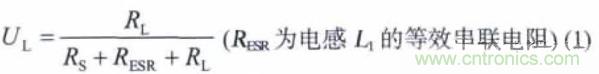 式(1)表明加入電感L 將使UL 變小,影響電源的負(fù)載調(diào)整率。若要使輸出電壓穩(wěn)定,應(yīng)選用等效串聯(lián)電阻小的電感器件,電感器的等效串聯(lián)電阻由其繞制導(dǎo)線(xiàn)的直流電阻決定。