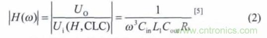 對(duì)于開(kāi)關(guān)電源輸出而言,其交流信號(hào)即為電源紋波信號(hào)根據(jù)CLC 濾波電路傳遞函數(shù):
