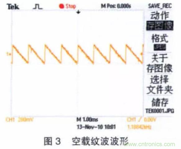 2.2.1 無(wú)濾波電路時(shí)電源輸出紋波波形