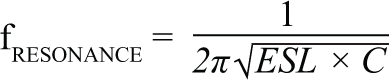 電容自諧振頻率就是電容電抗(1/ωC)等于ESL電抗(ωESL)時(shí)的頻率。對(duì)這一諧振頻率等式求解得到下式: