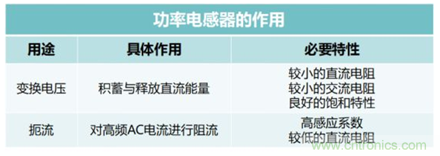 功率電感器一般用于電源處,能承受較大電流。電源電路中的電感器的主要用途有“變換電壓用”以及“扼流用”,并被用于各種電子設備中。