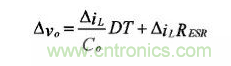 輸出濾波電容的選擇應考慮工作頻率、輸出電流紋波、輸出電壓紋波和能量儲存能力。電解電容的等效串聯(lián)電阻(ESR)會隨開關(guān)工作頻率的變化而變化。輸出電壓的紋波由以下公式給出: