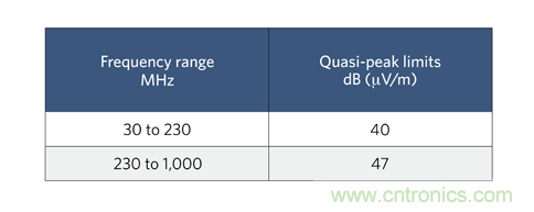 圖 3:CISPR 22 標(biāo)準(zhǔn) B 類輻射 EMI 規(guī)范。