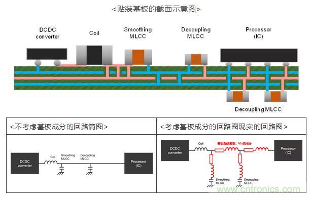 但是,隨著安裝小型化,對基板尺寸和貼裝區(qū)域的限制越發(fā)嚴格,已很難為了得到期望的阻抗特性而大量貼裝必要的MLCC。