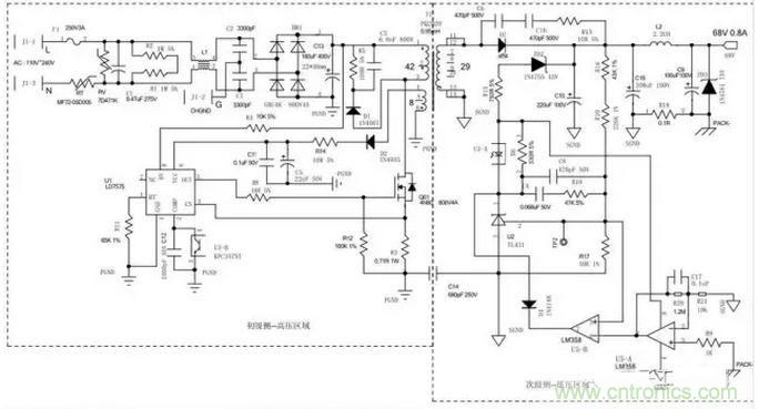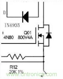 2、若反饋回路失效,輸出末端加穩(wěn)壓二極管,當輸出遠高出設(shè)定電壓,穩(wěn)壓二極管反向擊穿,使輸出正負極形成短路,使初級啟動短路保護或熔斷保險保護。