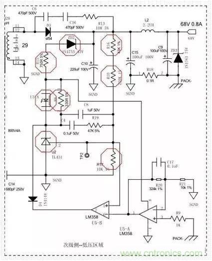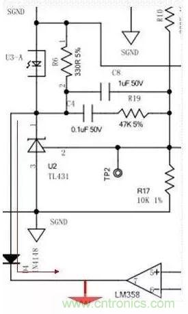 C8、C4、R19組成了431所需的回收回路補償,以便穩(wěn)定控制回路。