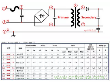 二:Y電容回路走線越短越好先經(jīng)過(guò)變壓器地再回到大電容地,不與其它信號(hào)線交叉;