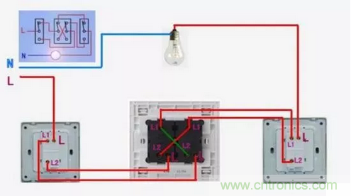 小技巧就是,兩個開關的L1L2同名的連一起