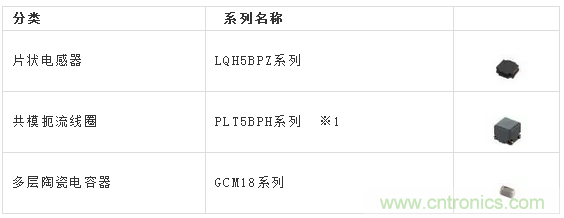 ※1:需要比1更有效果的靜噪對(duì)策時(shí)可考慮使用PLT10HH系列等其他共模扼流線圈。關(guān)于汽車的電源用共模扼流線圈,請(qǐng)參照以下選擇表。