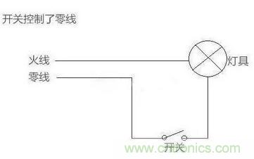 1、開(kāi)關(guān)控制了零線,火線直接進(jìn)了燈具