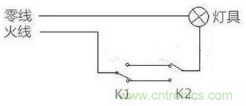 雙控開(kāi)關(guān)有很多種接線方式,如果電工采用了下面這種接線方法,就會(huì)關(guān)燈后發(fā)微光。
