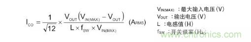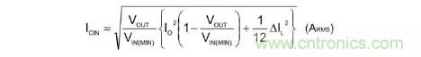 流向輸入電容器的紋波電流實(shí)效值ICIN用下列公式表示。