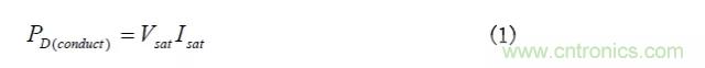 導通損耗可由開關兩端電壓和電流波形乘積測得。這些波形都近似線性,導通期間的功率損耗由式(1)給出。