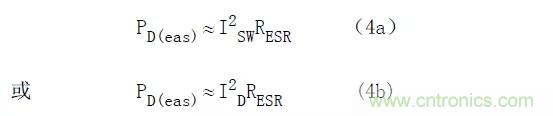 輸入輸出電容是功率開關或輸出整流器產生的高頻電流的唯一來源(或儲存處),所以通過觀察這些電流波形可以合理地確定流過這些電容ESR的電流。這個電流不可避免地在電容內產生熱量。設計濾波電容的主要任務就是確保電容內部發(fā)熱足夠低,以保證產品的壽命。式(4)給出了電容的ESR所產生的功率損耗的計算式。