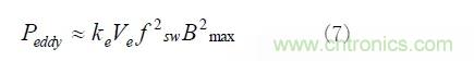 渦流損耗比磁滯損耗小得多,但隨著工作頻率的提高而迅速增加,如式(7)所示。
